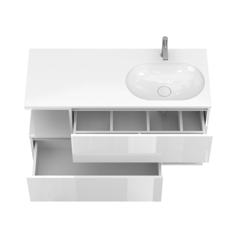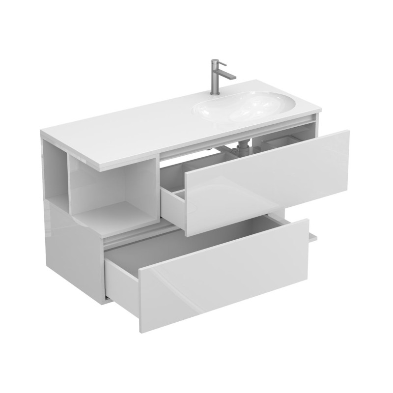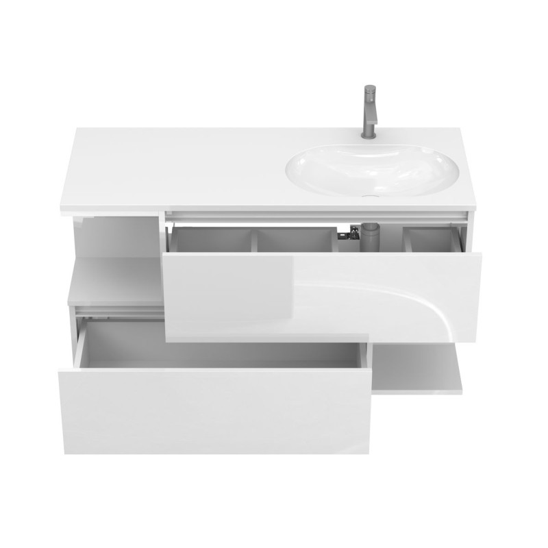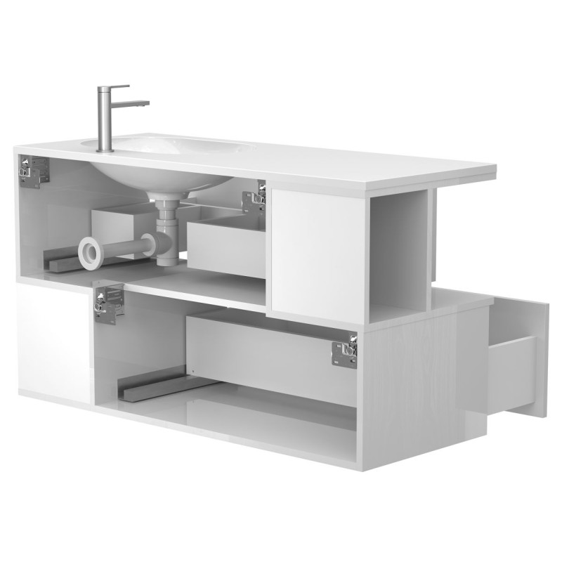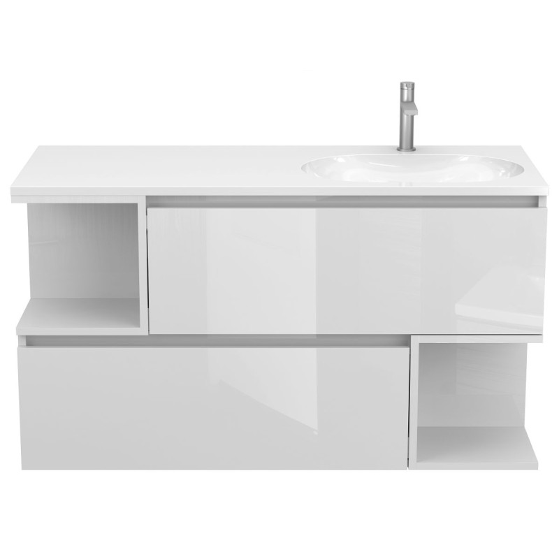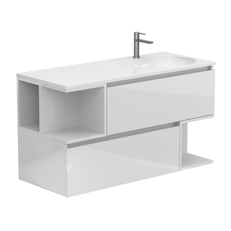 Тумба підвісна URBAN Біла глянцева з умивальником NEW YORK 1200 R від бренду MIRAGGIO — практичне та стильне рішення для ванної кімнати дому, готелю чи апартаментів.