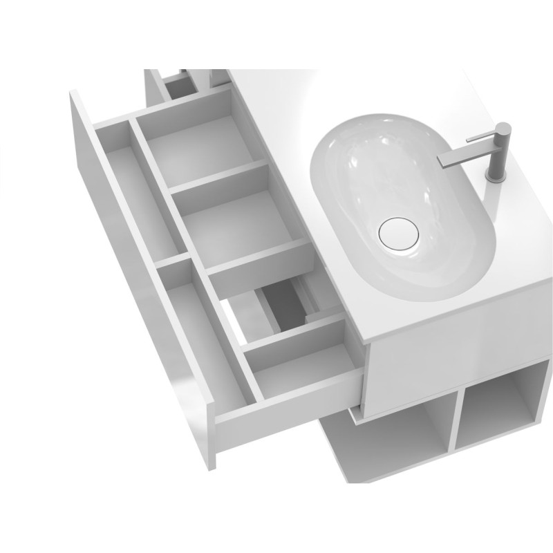 Корпус виготовлений з МДФ Білий глянець, що забезпечує міцність, вологостійкість та довгий термін експлуатації.