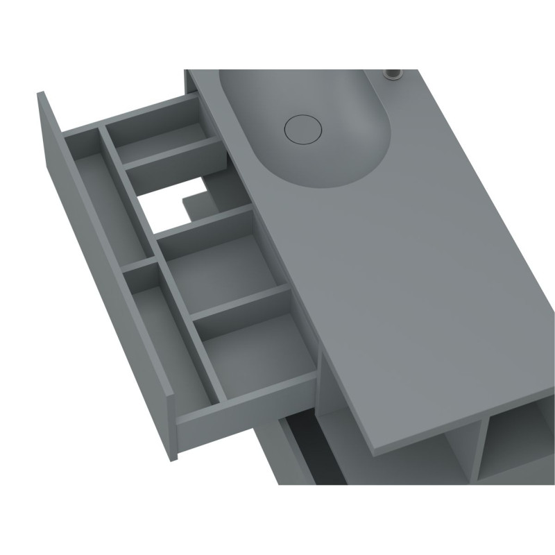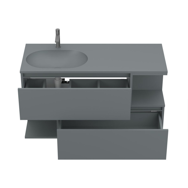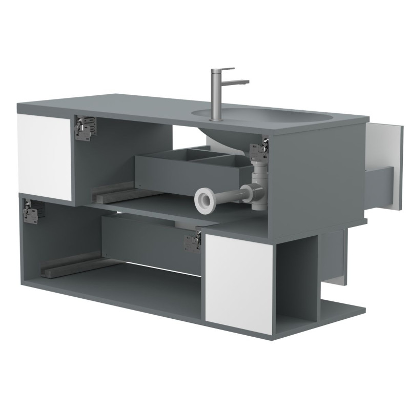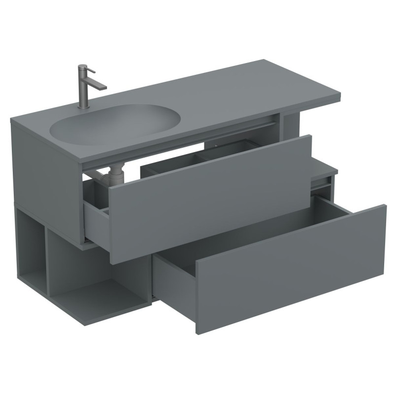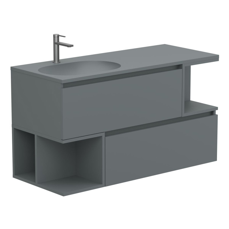 Тумба підвісна URBAN Сіра матова з умивальником NEW YORK 1200 L від бренду MIRAGGIO — практичне та стильне рішення для ванної кімнати дому, готелю чи апартаментів.