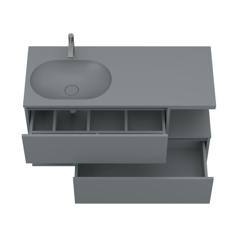 Тумба підвісна URBAN Сіра soft-touch з умивальником NEW YORK 1200 L від бренду MIRAGGIO — практичне та стильне рішення для ванної кімнати дому, готелю чи апартаментів.