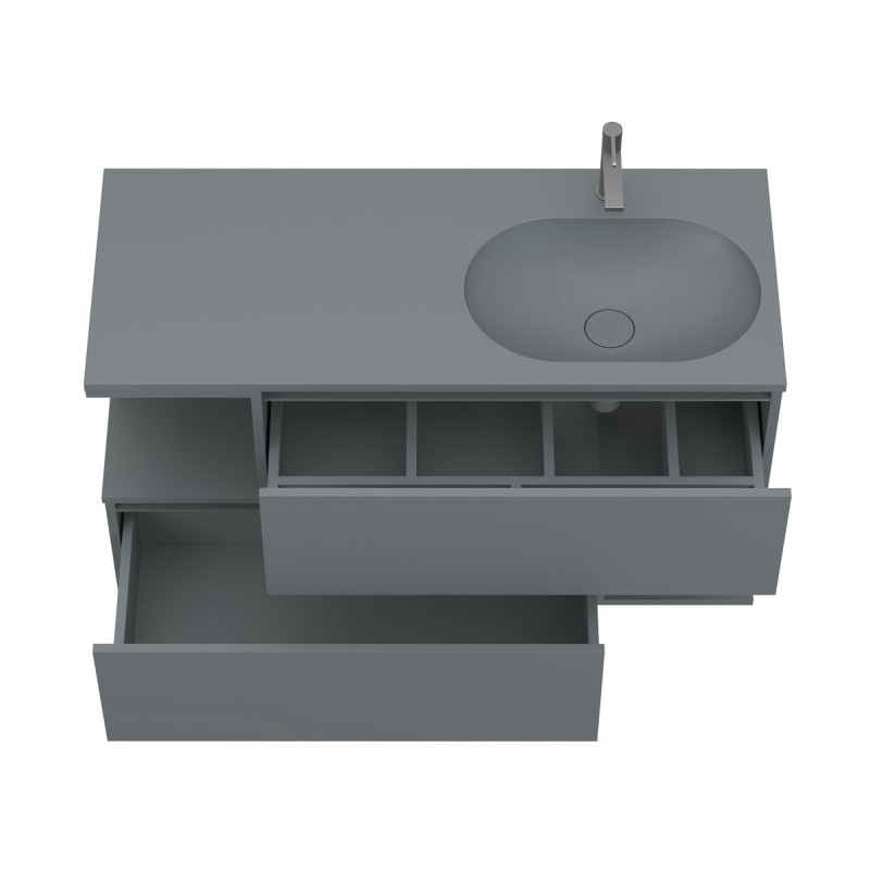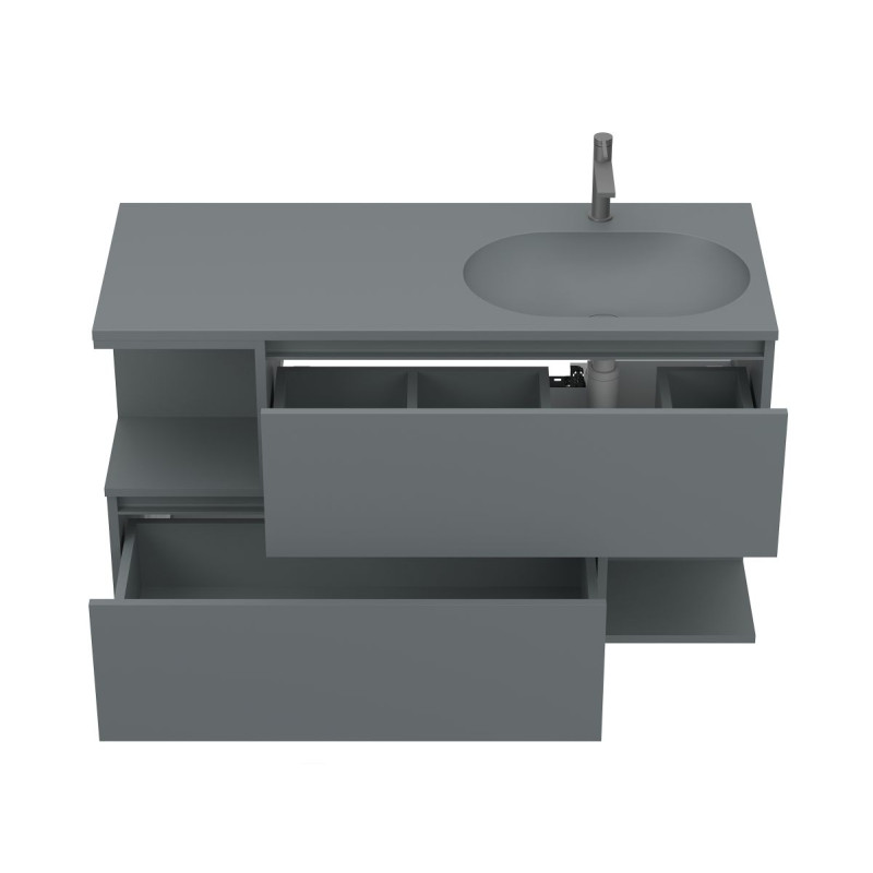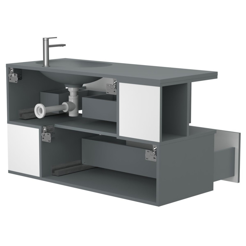 Тумба підвісна URBAN Сіра soft-touch з умивальником NEW YORK 1200 R від бренду MIRAGGIO — практичне та стильне рішення для ванної кімнати дому, готелю чи апартаментів.