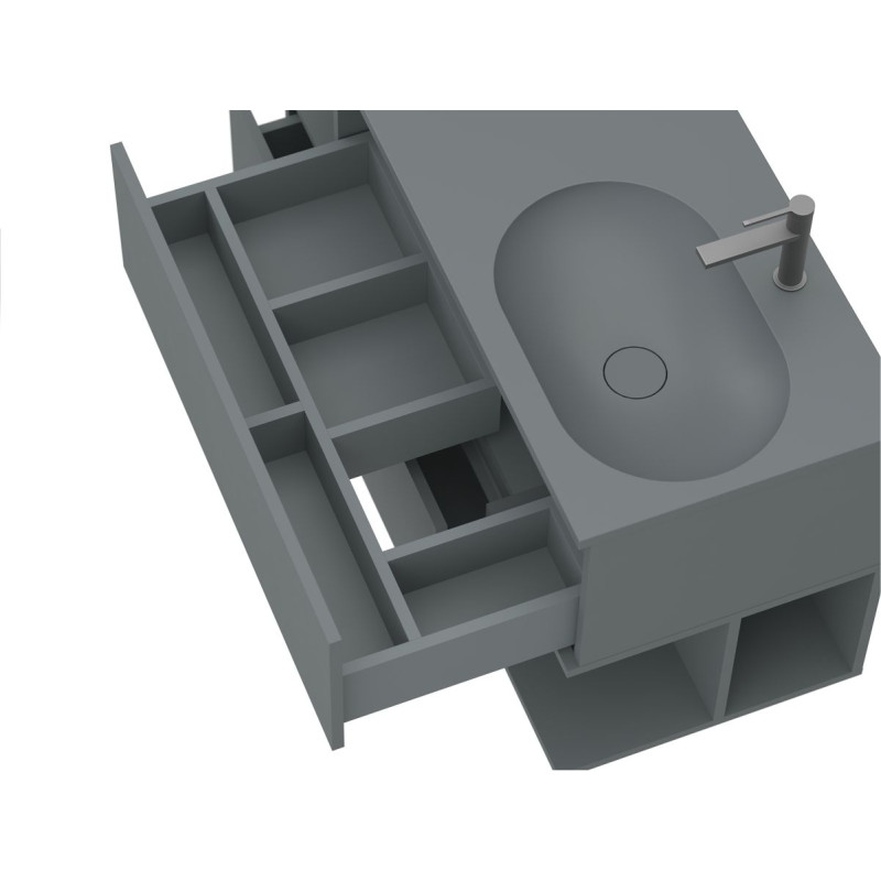 Корпус виготовлений з МДФ Сірий soft-touch, що забезпечує міцність, вологостійкість та довгий термін експлуатації.