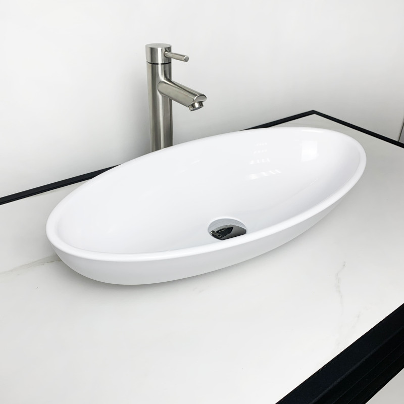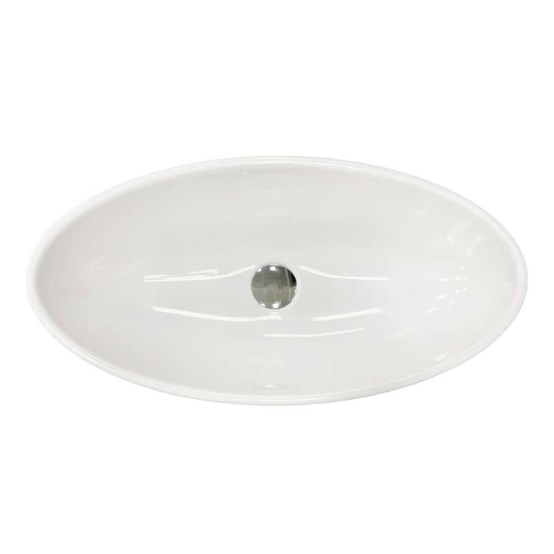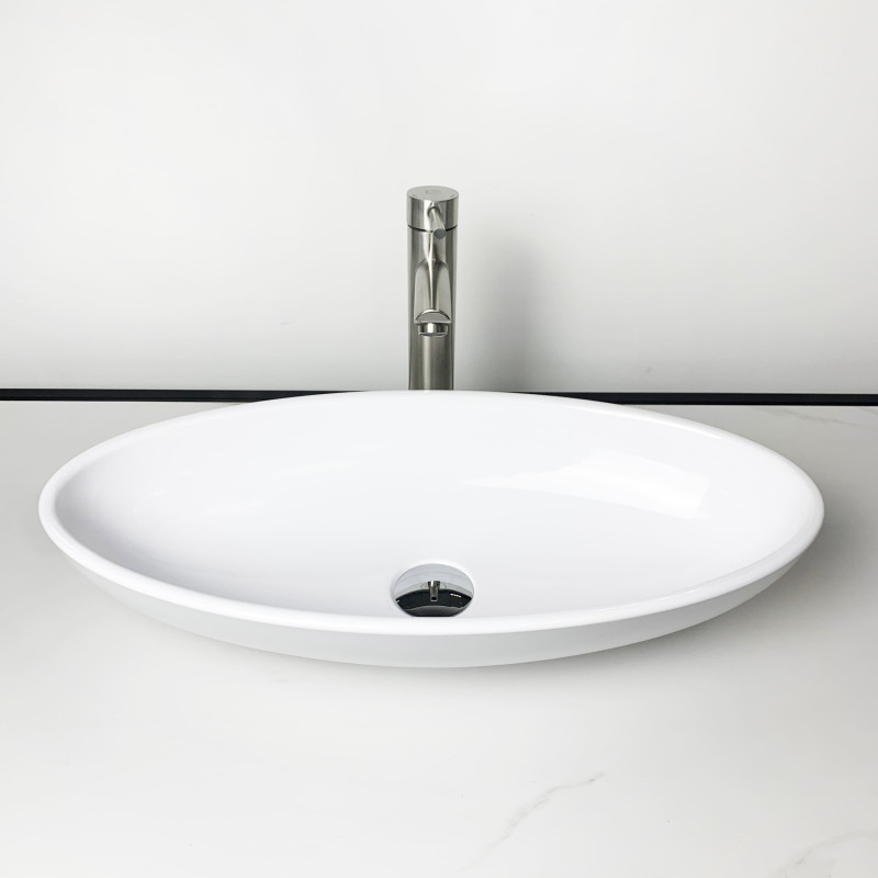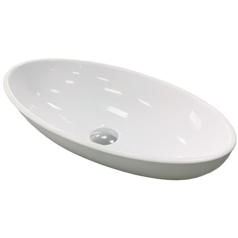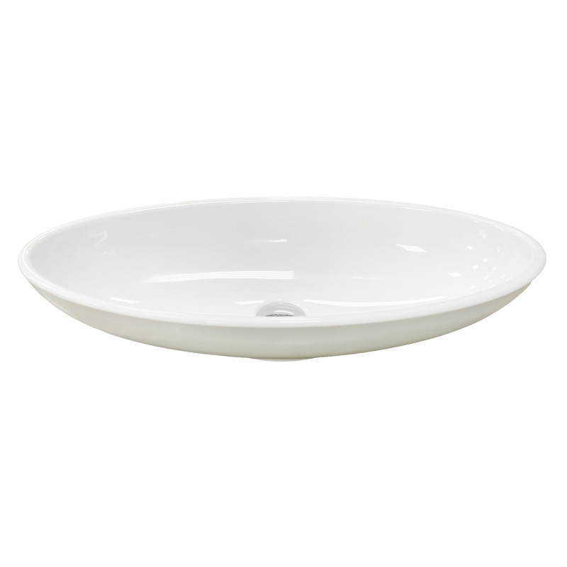 Раковина Adamant ANDERE NEW має овальну форму, виготовлена зі штучного каменю з розмірами 590 x 295 x 130 мм та білим кольором. Накладний тип встановлення без отвору для змішувача та переливу дозволяє гнучкий монтаж на стільницю чи тумбу. Матеріал складається з 80% литого каменю та 20% сантехнічної штучної кераміки, стінки товщиною до 20 мм. Поверхня гладка, стійка до барвників та хімічних речовин, витримує температуру до +165°C.