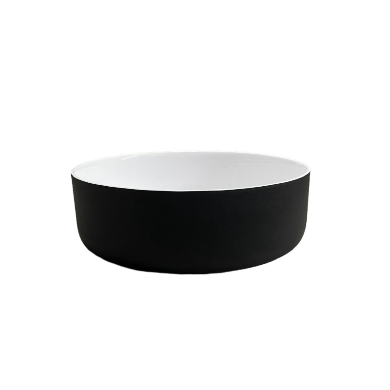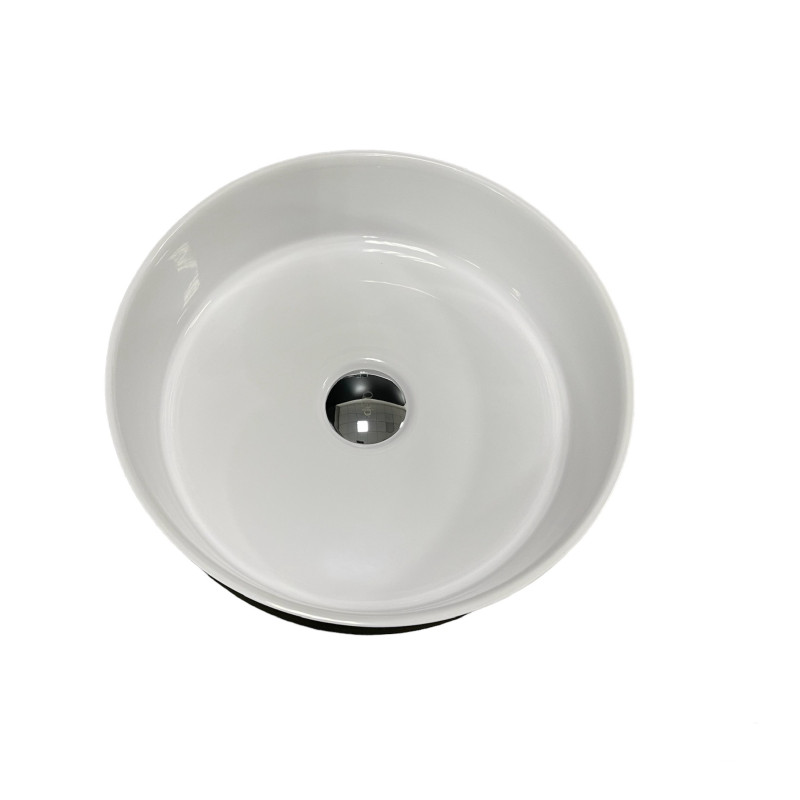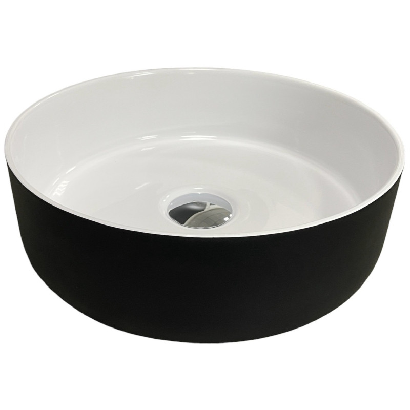 Раковина Adamant ARENA має круглу форму, виготовлена зі штучного каменю з розмірами 360 x 113 мм та чорно-білим кольором. Накладний тип встановлення без отвору для змішувача та переливу дозволяє монтаж зверху на стільницю. Матеріал створений за технологією Solid Surface, стійкий до впливу та довговічний.