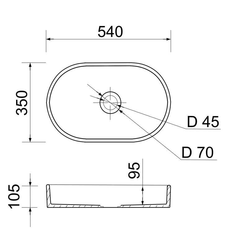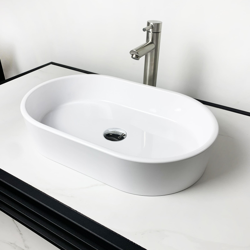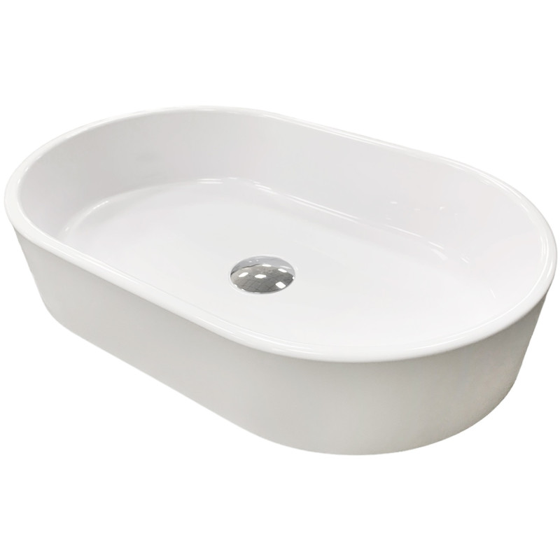 Раковина Adamant BESTE NEW має овальну форму, виготовлена зі штучного каменю з розмірами 540 x 350 x 110 мм та білим кольором. Накладний тип встановлення без отвору для змішувача та переливу дозволяє монтаж зверху на стільницю. Матеріал створений за технологією Solid Surface, стійкий до впливу та довговічний. Виріб вироблено в Україні.