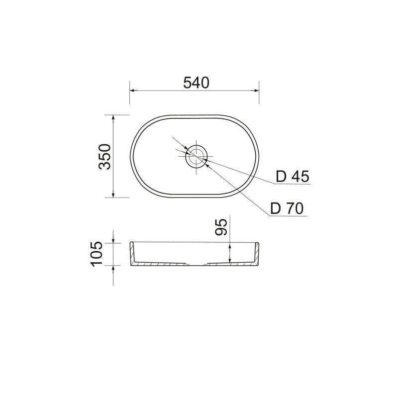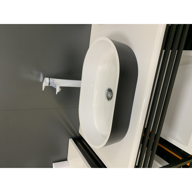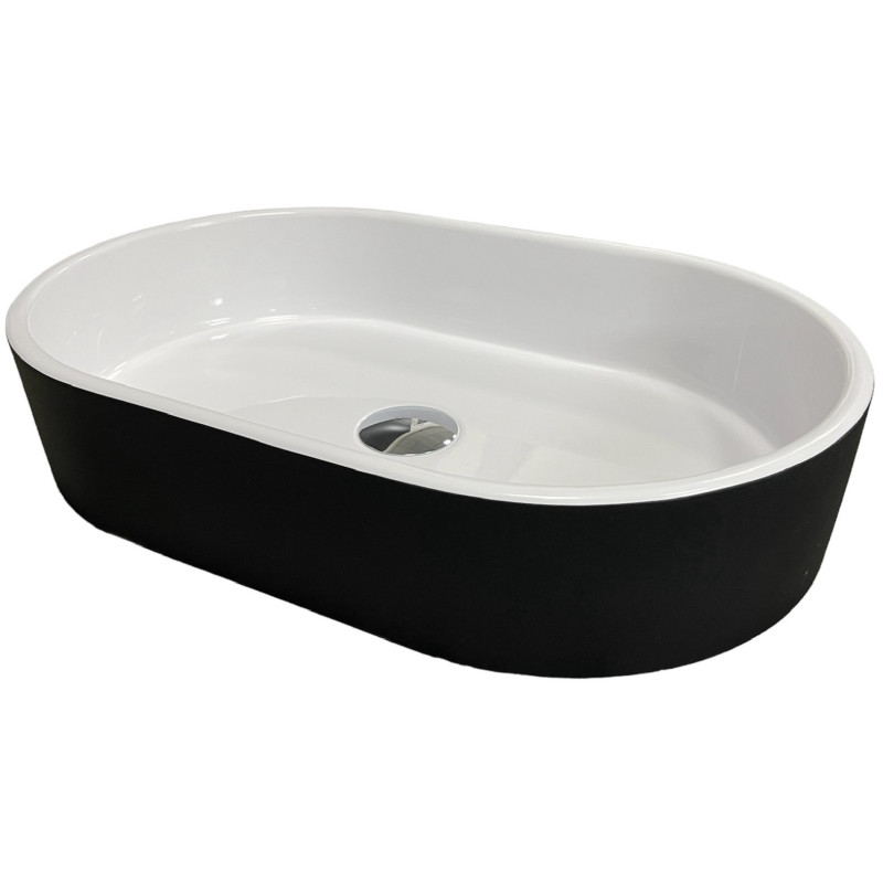 Раковина Adamant BESTE NEW має овальну форму, виготовлена зі штучного каменю з розмірами 540 x 350 x 110 мм та чорно-білим кольором. Накладний тип встановлення без отвору для змішувача та переливу дозволяє монтаж зверху на стільницю. Матеріал створений за технологією Solid Surface, стійкий до впливу та довговічний. Виріб вироблено в Україні.