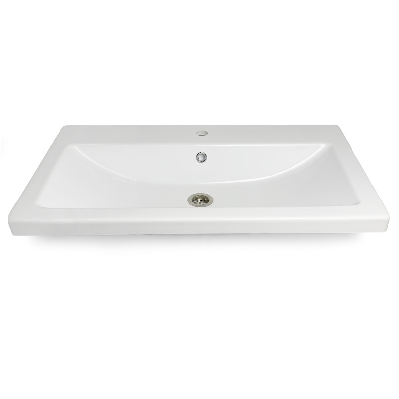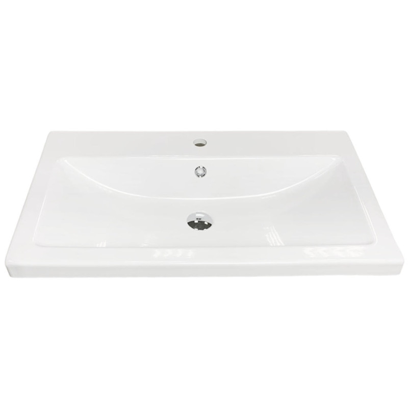 Раковина Adamant CERS має прямокутну форму, виготовлена зі штучного каменю з розмірами 795 x 450 x 158 мм та білим кольором. Накладний тип встановлення з отворами для змішувача та переливу дозволяє монтаж на тумбу. Матеріал створений за технологією Solid Surface, стійкий до впливу та довговічний.