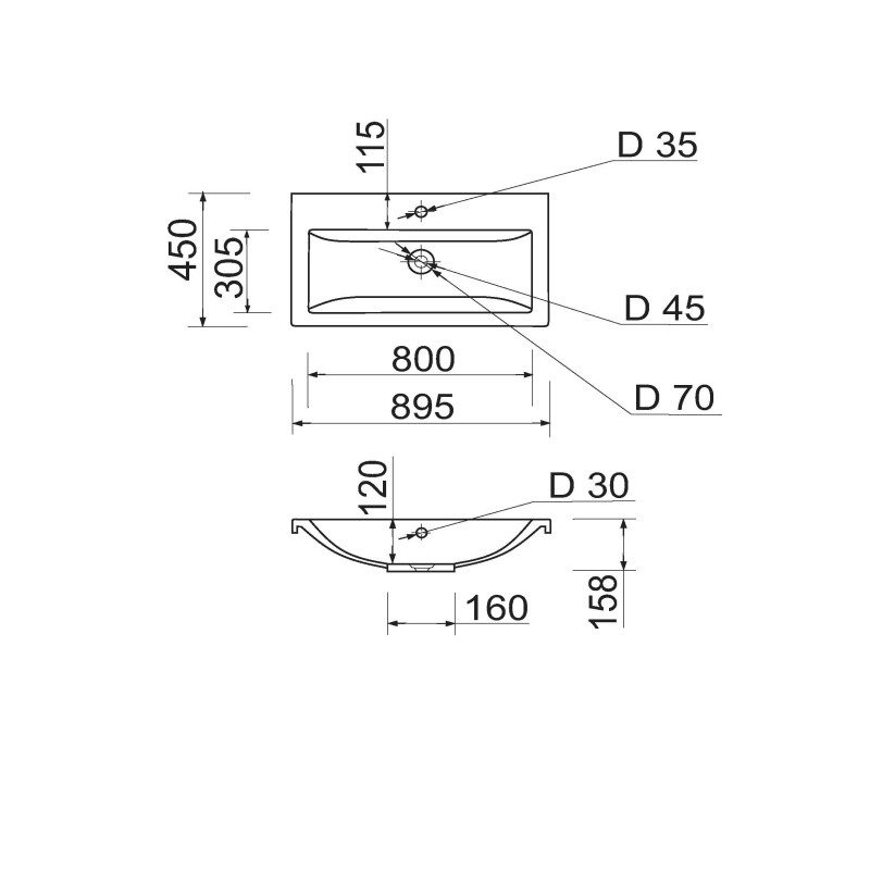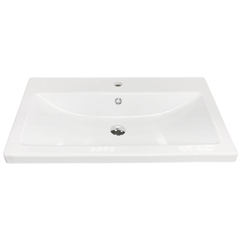 Раковина Adamant CERS має прямокутну форму, виготовлена зі штучного каменю з розмірами 895 x 450 x 158 мм та білим кольором. Накладний тип встановлення з отворами для змішувача та переливу дозволяє монтаж на тумбу. Матеріал створений за технологією Solid Surface, стійкий до впливу та довговічний.