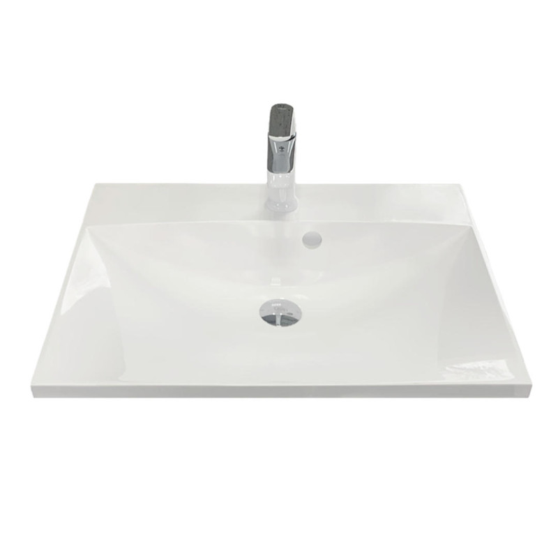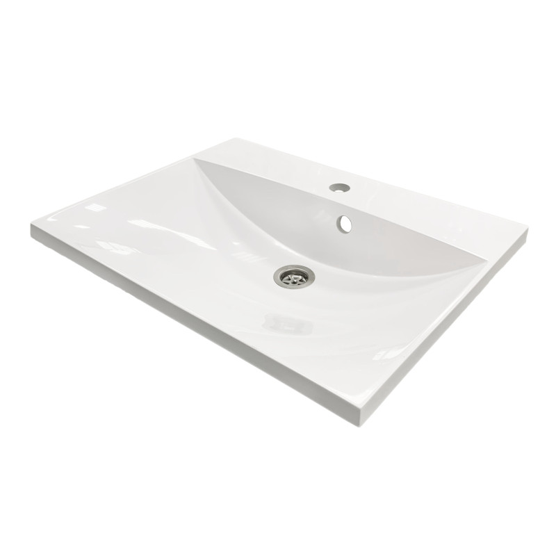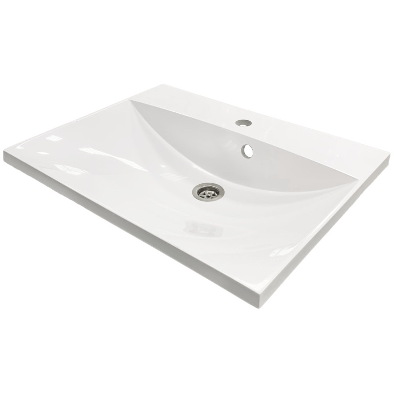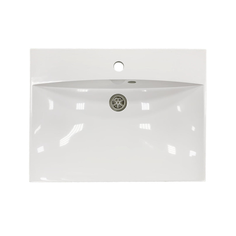 Раковина Adamant Emil має прямокутну форму, виготовлена зі штучного каменю з розмірами 595 x 455 x 138 мм та білим кольором. Накладний тип встановлення з отворами для змішувача та переливу дозволяє монтаж на тумбу. Матеріал створений за технологією Solid Surface, стійкий до впливу та довговічний.