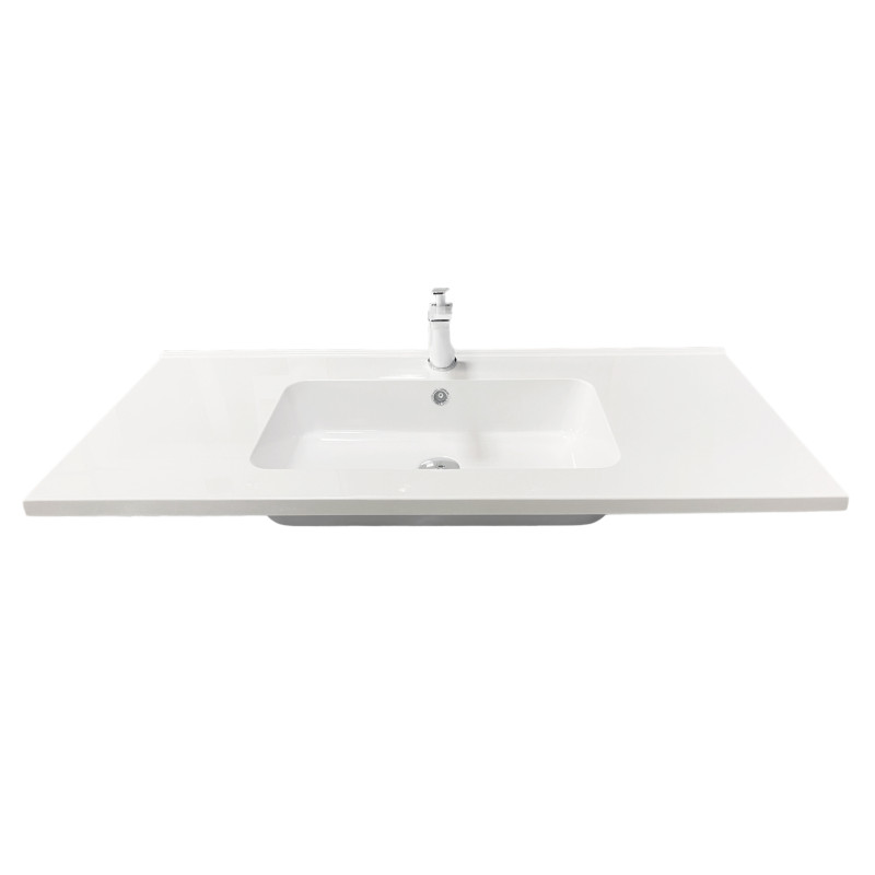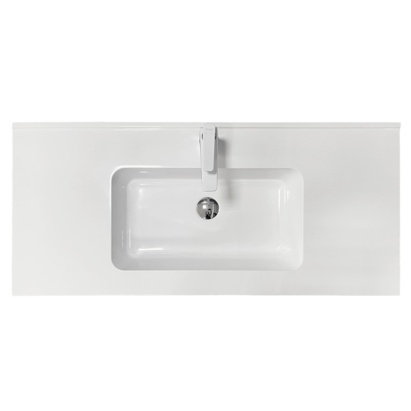 Раковина Adamant FLAT має прямокутну форму, виготовлена зі штучного каменю з розмірами 1000 x 450 x 140 мм та білим кольором. Накладний тип встановлення з отворами для змішувача та переливу дозволяє монтаж на тумбу. Матеріал створений за технологією Solid Surface, стійкий до впливу та довговічний.