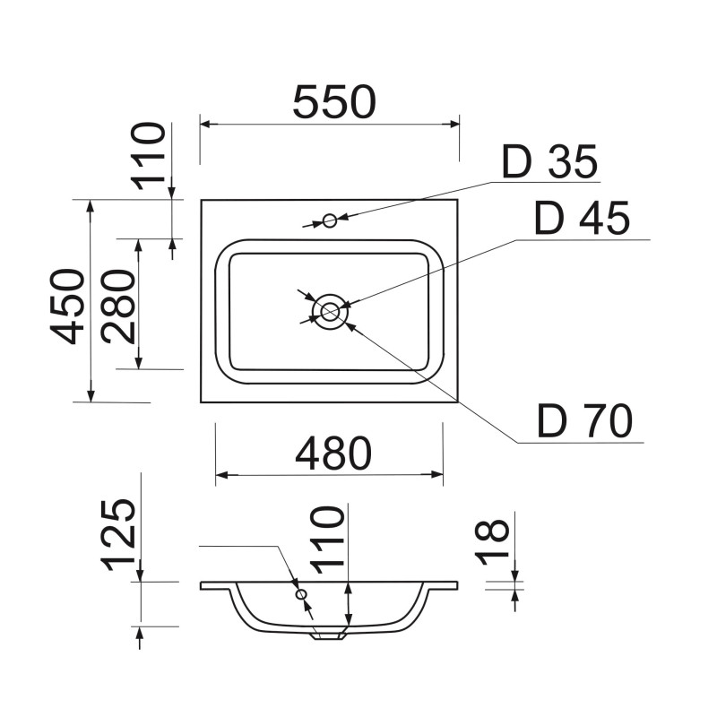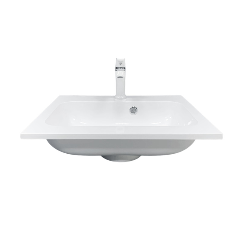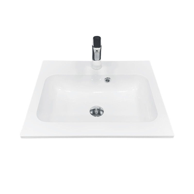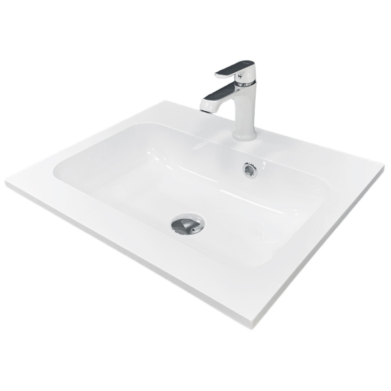 Раковина Adamant FRATE має прямокутну форму, виготовлена зі штучного каменю з розмірами 550 x 450 x 125 мм та білим кольором. Накладний тип встановлення з отворами для змішувача та переливу дозволяє монтаж на тумбу. Матеріал створений за технологією Solid Surface, стійкий до впливу та довговічний.