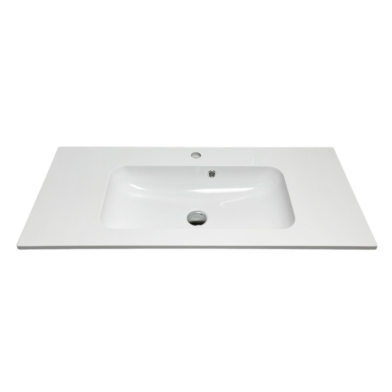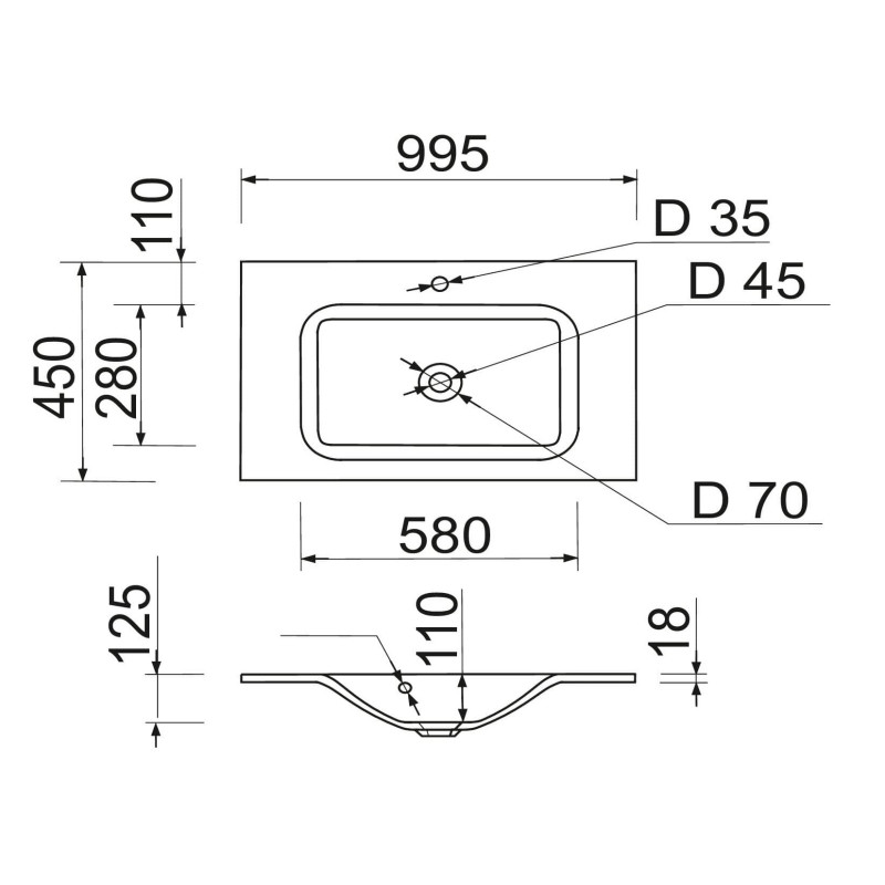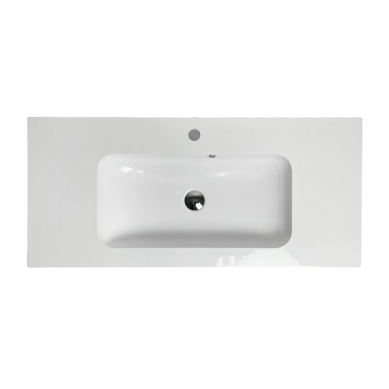 Раковина Adamant FRATE має прямокутну форму, виготовлена зі штучного каменю з розмірами 995 x 450 x 125 мм та білим кольором. Накладний тип встановлення з отворами для змішувача та переливу дозволяє монтаж на тумбу. Матеріал створений за технологією Solid Surface, стійкий до впливу та довговічний.