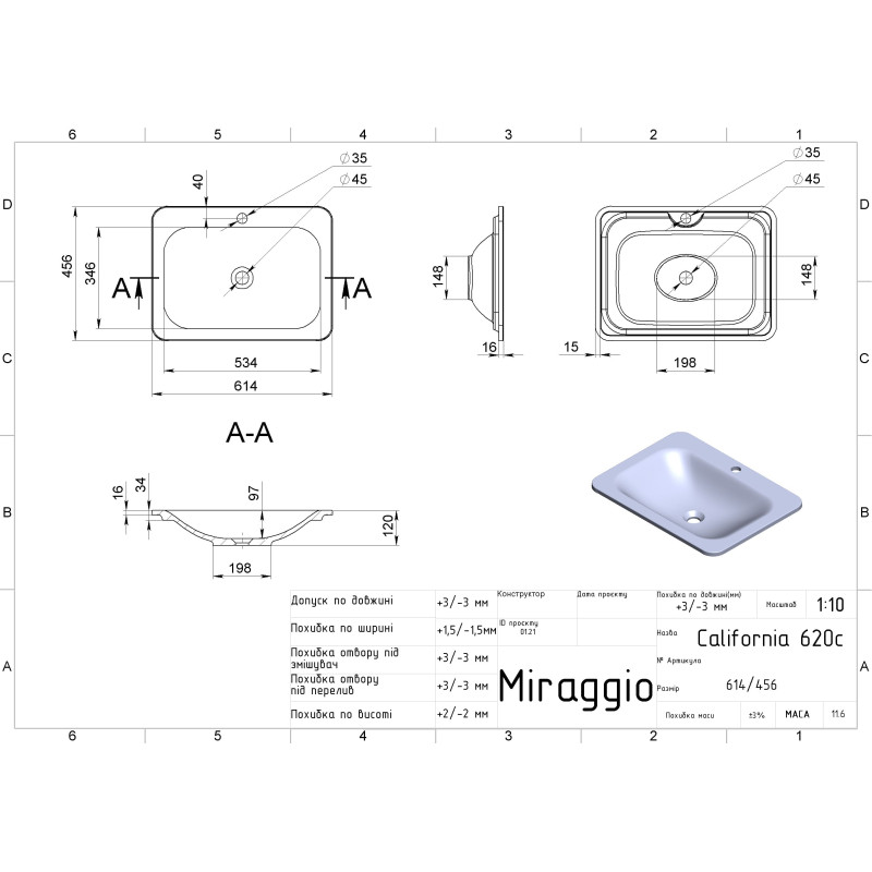 | Назва | Умивальник врізний MIRAGGIO CALIFORNIA 61*46*12 Сірий 0000387 |