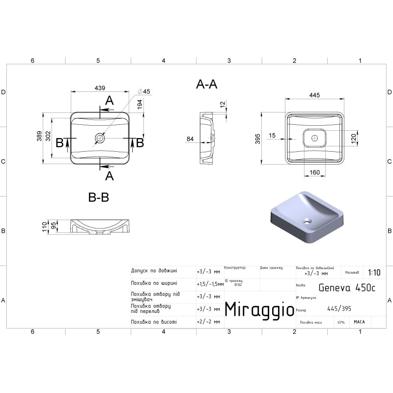 | Назва | Умивальник врізний MIRAGGIO GENEVA 45*40*11 Чорний 8813464 |