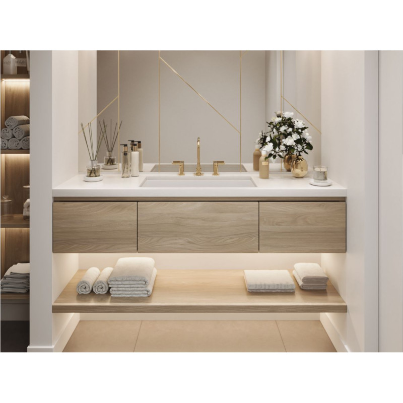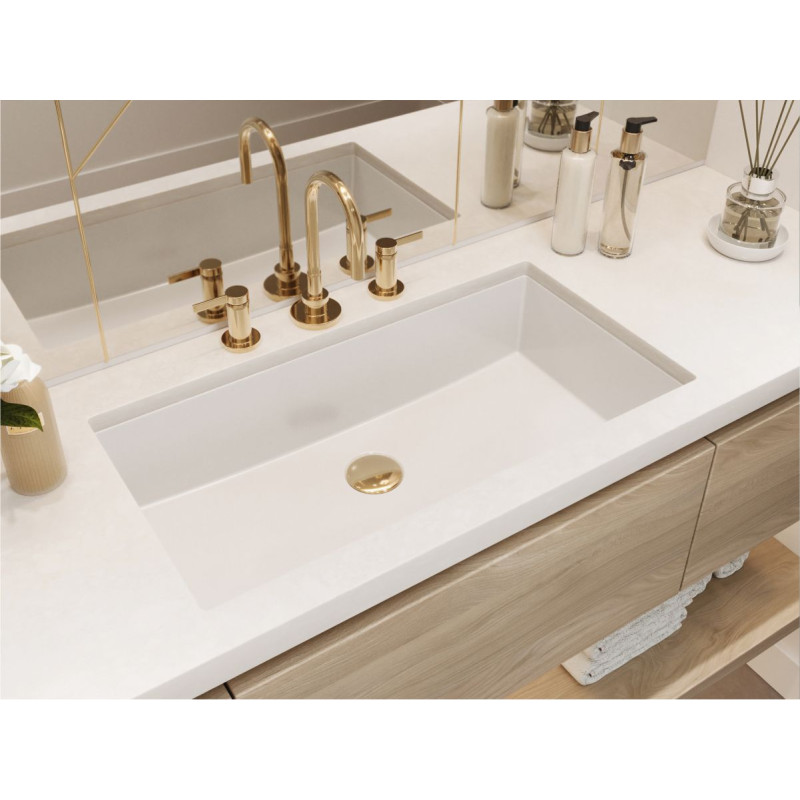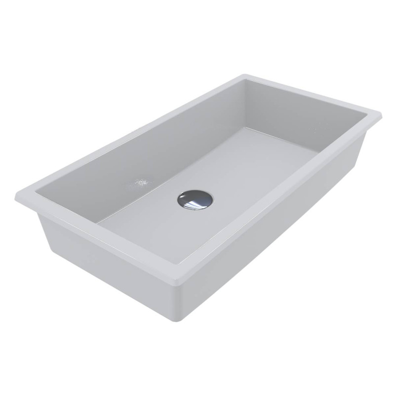 Прямокутний за формою чаші раковина має тип монтажу - під стільницю, врахуйте це перед замовленням меблів у ванну кімнату.