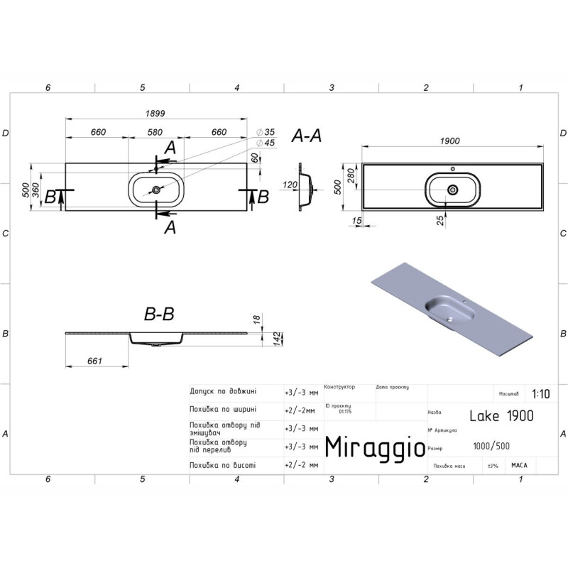 | Ширина, мм | 1900 |