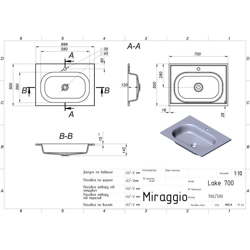 | Ширина, мм | 700 |