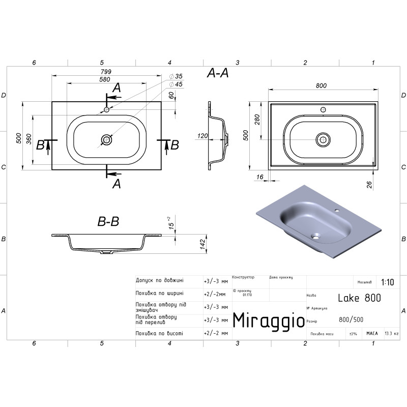 Умивальник LAKE 800 від бренду MIRAGGIO - це ідеальне рішення для санвузла дому, готелю чи дачі.