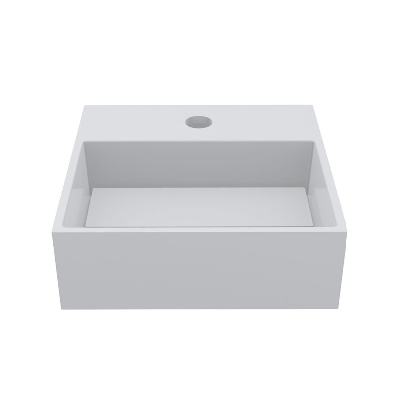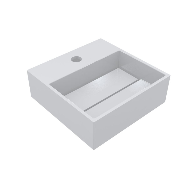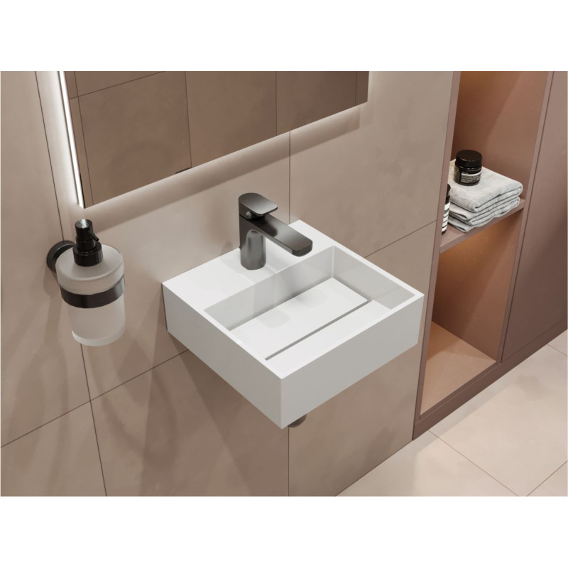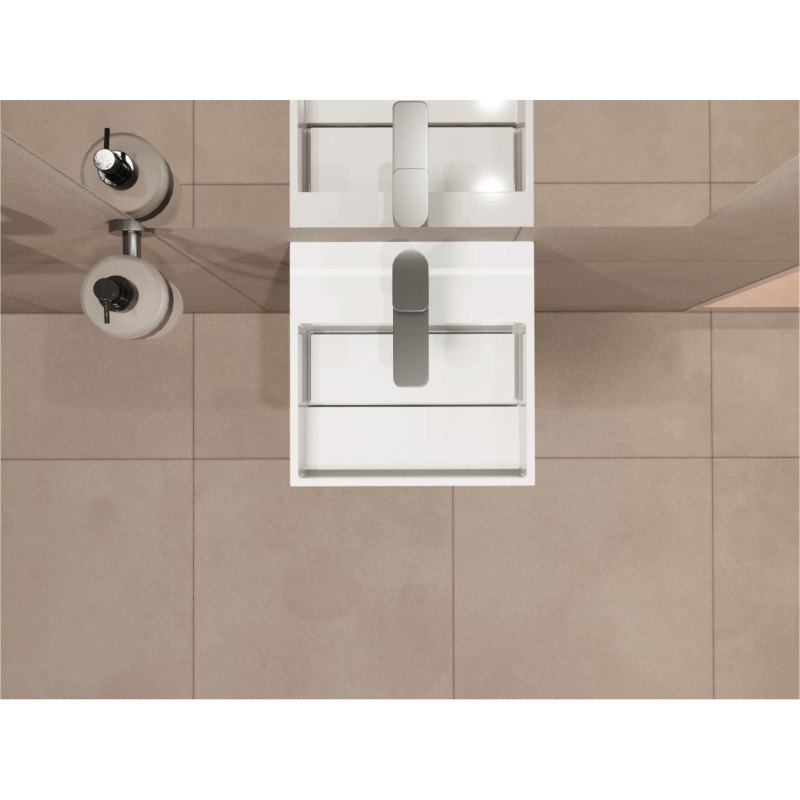Квадратний за формою чаші раковина має тип монтажу - на тумбу, врахуйте це перед замовленням меблів у ванну кімнату.