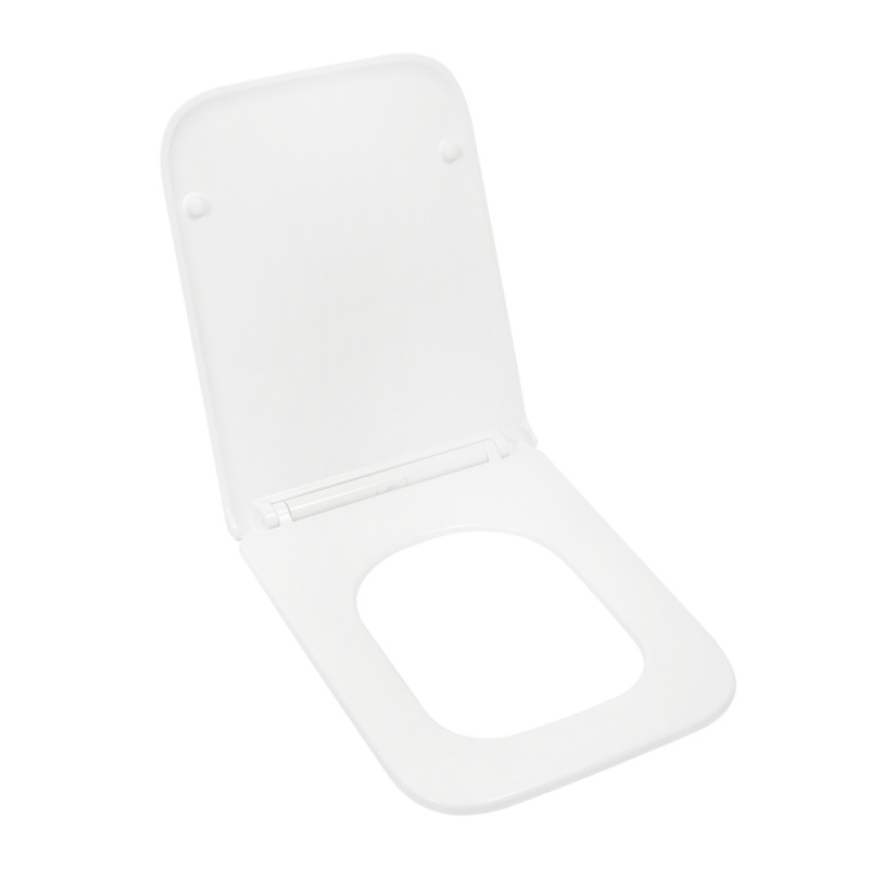 Сидіння унітазу вироблене з дюропласту, що своїм зовнішнім виглядом нагадує кераміку і має білосніжний колір. Матеріал не боїться впливу агресивних речовин, та стійкий до температурних коливань. Сидіння унітазу має кнопку швидкого знімання, знімається та монтується на чашу унітазу одним рухом. Система опускання кришки Soft Close забезпечує плавне, м’яке та безшумне закриття кришки, та дозволяє уникнути постійних ударів у процесі експлуатації.