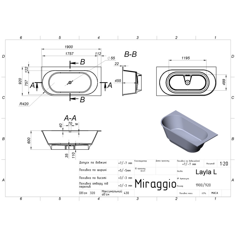 Ванна зі штучного каменю MIRAGGIO - ідеальний варіант доповнення сучасного інтер'єру ванної кімнати. Овальна ванна LAYLA L з матеріалу Mirasoft Technology - це досконале творіння за дизайном та функціональністю. Поверхня ванни - матова. Тип встановлення ванни - пристінна.