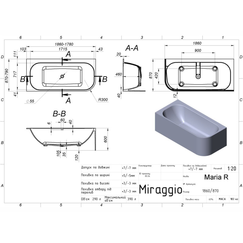 | Назва | Ванна MIRAGGIO MARIA R пристінна 186*60*46 Глянець Біла 8814055 |