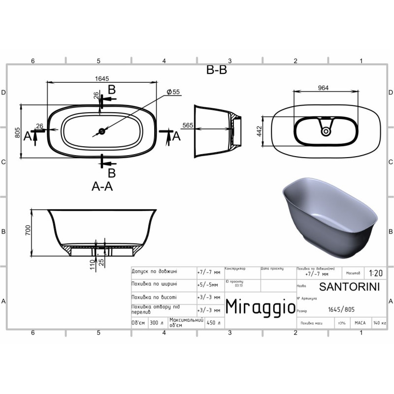 | Назва | Ванна MIRAGGIO SANTORINI окремостояча 165*81*70 Mirasoft Біла 0002409 |