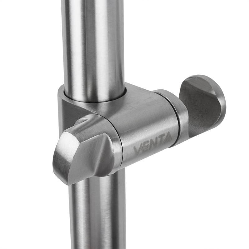 Душова стійка VENTA SR-18 з настінним кріпленням і поворотним тримачем, що фіксується по висоті. Підходить для змішувачів душових, термостатичних, прихованого монтажу, змішувачів для ванни, душових лійок і шлангів. Тримач поєднується з іншими доступними аксесуарами. Вся сантехніка має сертифікати якості та санітарно-гігієнічні висновки.