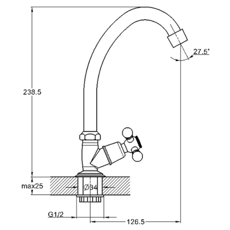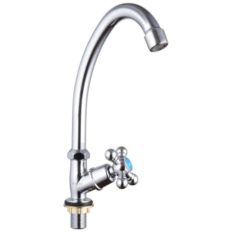 Моно-змішувач G-Lauf JMX14-A605 використовується для умивальника, має зігнутий вилив (гусак) 125мм, одновентильне управління і класичний дизайн. Монтується змішувач на умивальник з допомогою гайки.