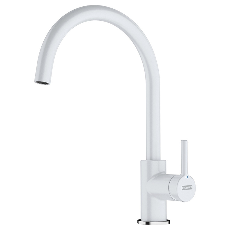Врізний кухонний змішувач Franke Lina з поворотним виливом, важелем збоку і багаторівневим аератором.