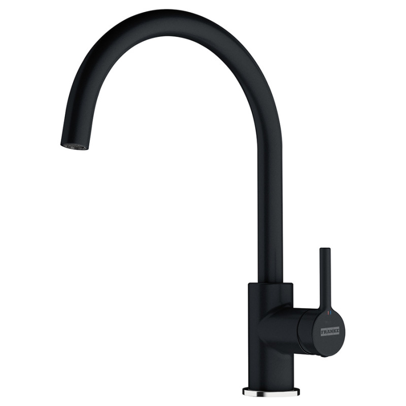 Врізний кухонний змішувач Franke Lina з поворотним виливом, важелем збоку і багаторівневим аератором.