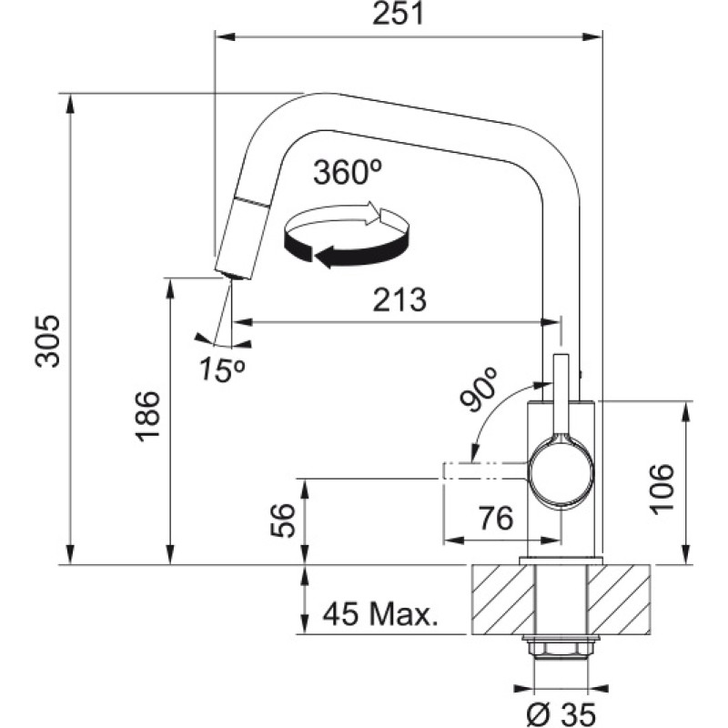Franke Lina U Pull Down — це стильний кухонний змішувач із витяжним виливом довжиною 251 мм, який поєднує сучасний дизайн, хромоване покриття та зручність у щоденному використанні. Одноважільне керування та можливість обертання забезпечують максимальну функціональність.