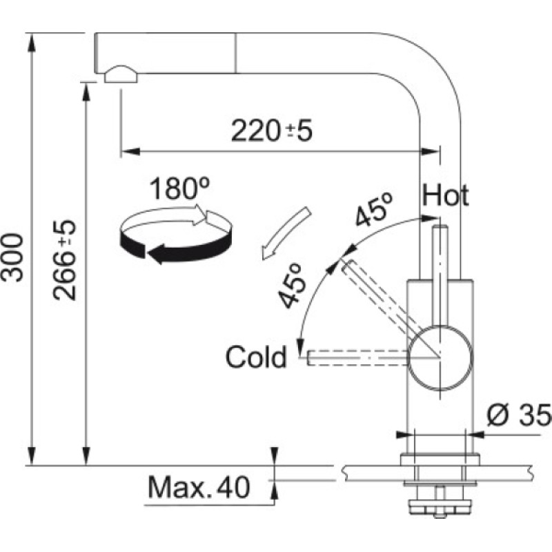 | Кут повороту зливу | 180 ° |