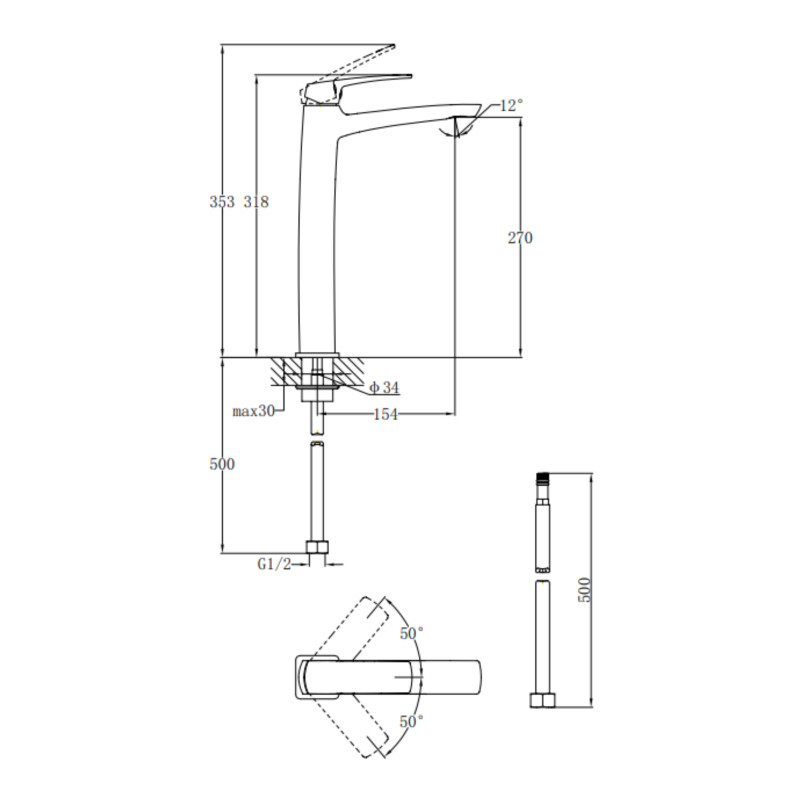 | Комплектація | Змішувач, гнучке підведення, кріплення. |
