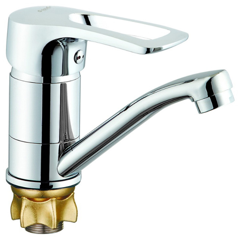 Змішувач G-Lauf 4G4-B181 встановлюється на умивальник, має поворотний прямий вилив (гусак) 140мм, литий корпус, одноважільне управління, керамічний картридж діаметром 40мм і гарний сучасний дизайн.