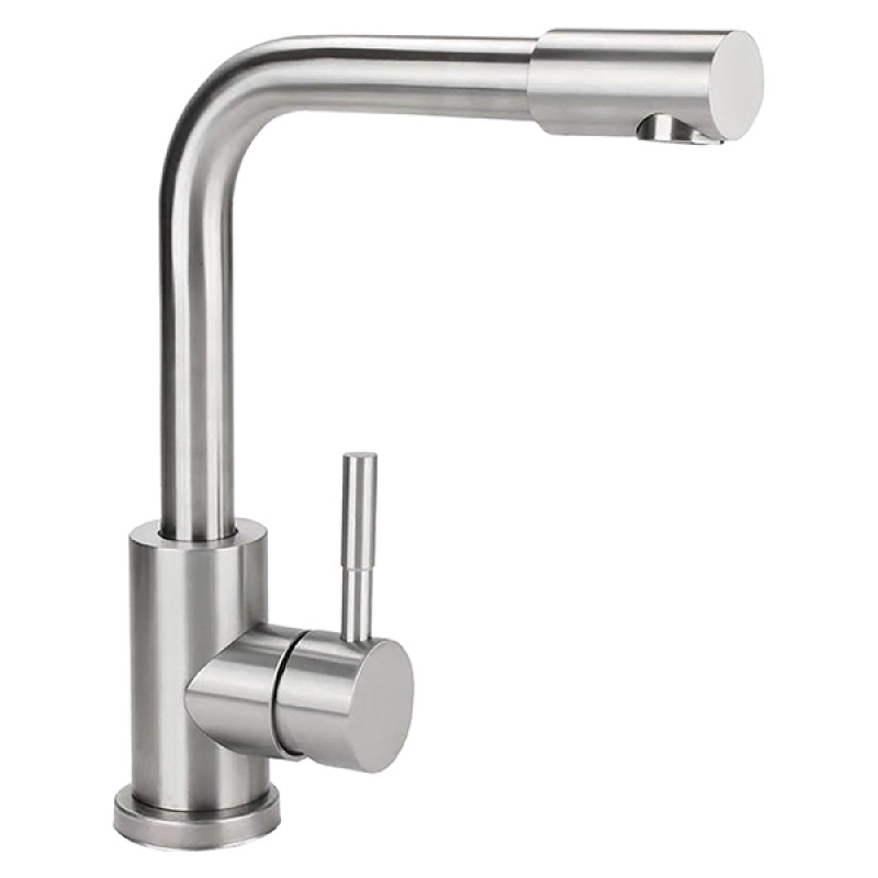 Змішувач для кухні Lambert із зігнутим зливом і довжиною гусака 180 мм. Змішувач одноважільний з керамічним картриджем 35 мм. Всі змішувачі Lambert - це вироби, повністю виготовлені з нержавіючої сталі, тому продукція після тривалої служби зберігає свій блиск. В основу виготовлення змішувача була закладена простота форм в поєднанні зі зручним і стильним дизайном, тому дана модель відмінно підійде для будь-якого інтер'єру і впишеться в будь-яку колірну гаму. Вся сантехніка має сертифікати якості та санітарно-гігієнічні висновки.