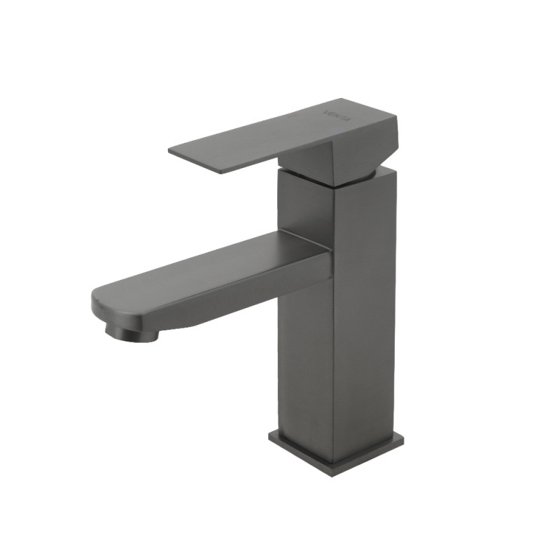 Змішувач для умивальника VENTA VC102MG — це сучасна естетика у стриманому виконанні. Матова графітова поверхня поєднується з чіткими прямими лініями корпусу, створюючи цілісний образ у стилі модерн. Завдяки компактним розмірам, змішувач ідеально підійде для малих і середніх умивальників. Виготовлений із латуні з антикорозійним покриттям, змішувач відзначається довгим терміном служби й стійкістю.