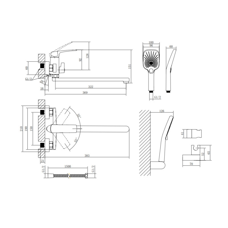 | Комплектація | Змішувач, лійка для ручного душу, душовий шланг, кронштейн для ручного душу, кріплення. |