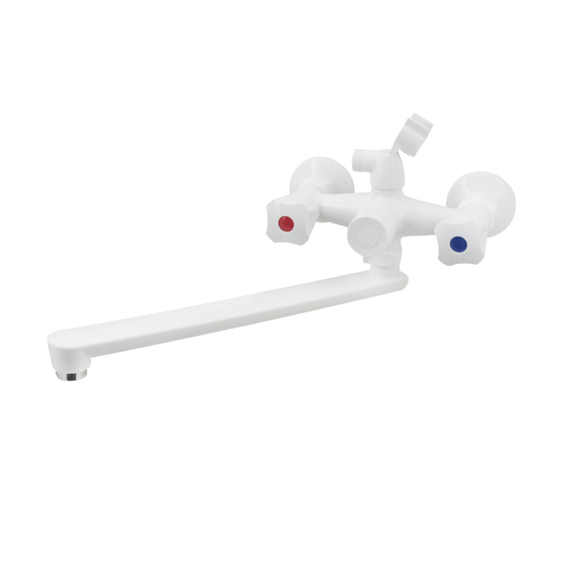 Пластиковий змішувач – дуже легкий, має привабливий зовнішній вигляд, виготовлений з сучасних матеріалів. Не зважаючи на доступність товару, він повноцінно справляється з технічною рідиною до +95 °C. Змішувачі мають стандартні входи для підводу води, що спрощує їх монтаж та подальше обслуговування. Монтаж та фіксація змішувача відбувається за допомогою пластикової гайки, яку можна притягнути та закрутити навіть без додаткових інструментів.