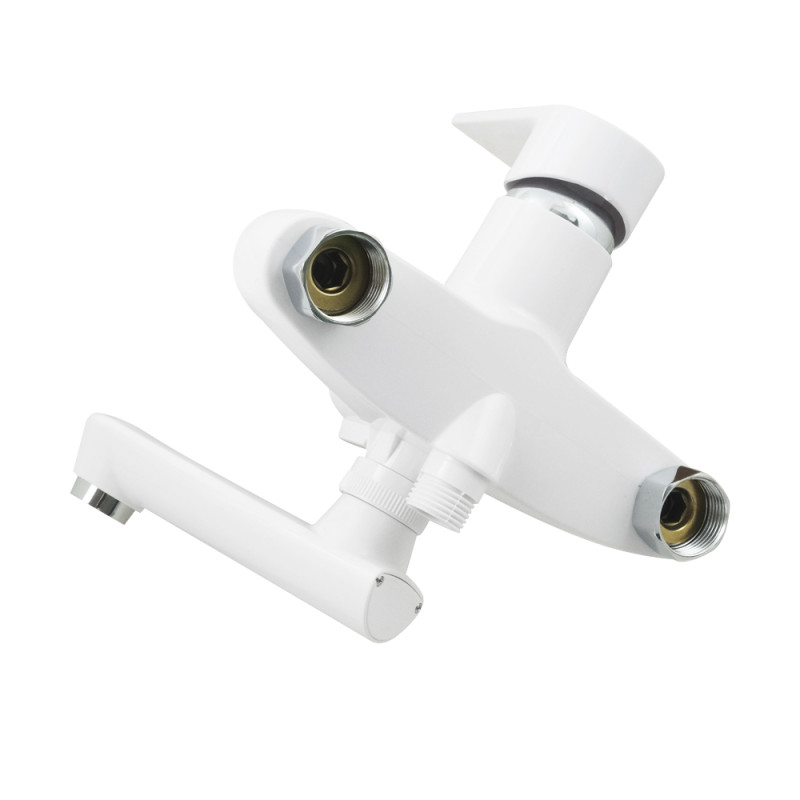 Пластиковий змішувач – дуже легкий, має привабливий зовнішній вигляд, виготовлений з сучасних матеріалів. Не зважаючи на доступність товару, він повноцінно справляється з технічною рідиною до +95 °C. Змішувачі мають стандартні входи для підводу води, що спрощує їх монтаж та подальше обслуговування. Монтаж та фіксація змішувача відбувається за допомогою пластикової гайки, яку можна притягнути та закрутити навіть без додаткових інструментів.