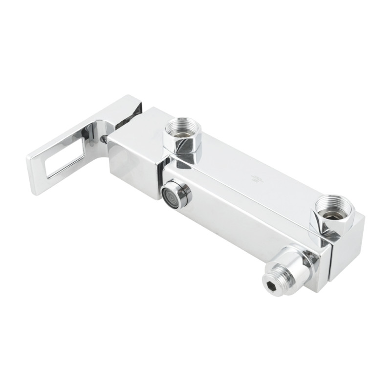 Змішувач для ванни VENTA BS345SC вирізняється нетривіальною геометрією корпусу, що одразу привертає увагу. Має незвичну прямокутну форму, що гармонійно поєднується з коротким прямим виливом та квадратними декоративними накладками для монтажу. Важіль розташовано праворуч — зручно для точного регулювання води однією рукою. Хромоване покриття посилює ефект блиску та глибини, чудово доповнюючи сучасні ванні кімнати.