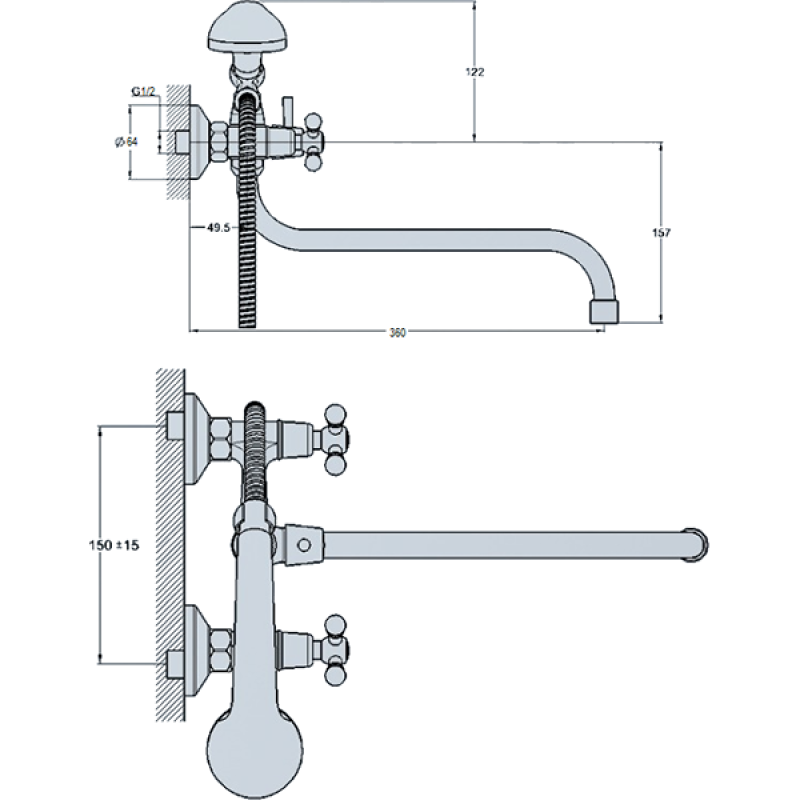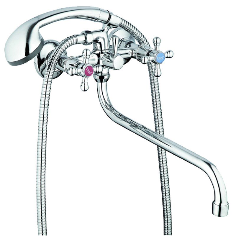 Змішувач для ванни G-Lauf JMX7-A605 з вигнутим виливом (гусак) довжиною 310 мм, двовентильне керування і класичний дизайн. Лиття в піщану форму дозволяє виробу мати велику структурну твердість і однорідну товщину стінок корпусу.