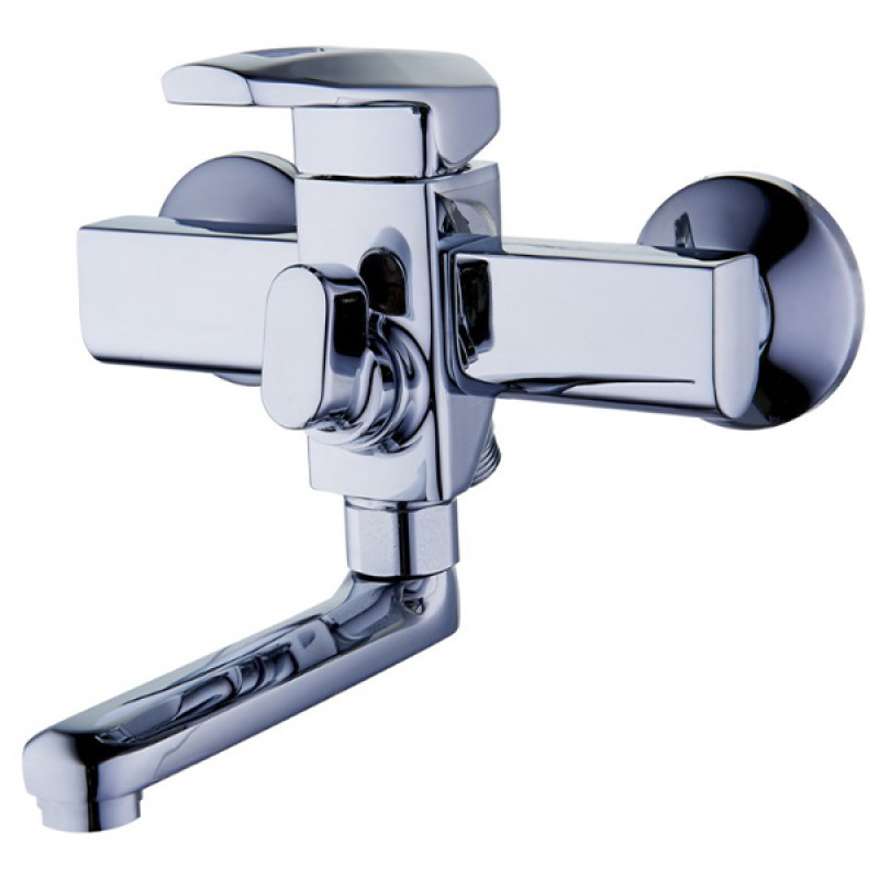 Змішувач для ванни G-Lauf LOF3-A033 з поворотним прямим виливом (гусак) 140 мм, одноважільним керуванням, європеремиканням, керамічним картриджем діаметром 35 мм і красивим сучасним дизайном.