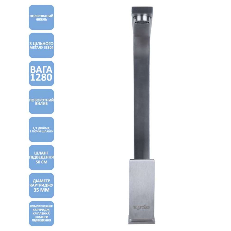 | Особливості | Підвід води- 1 / 2 дюйма, 2 гнучкі шланги 50см |
