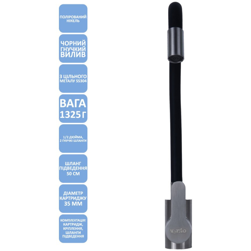 | Колір | полірований нікель + чорний гнучкий вилив |