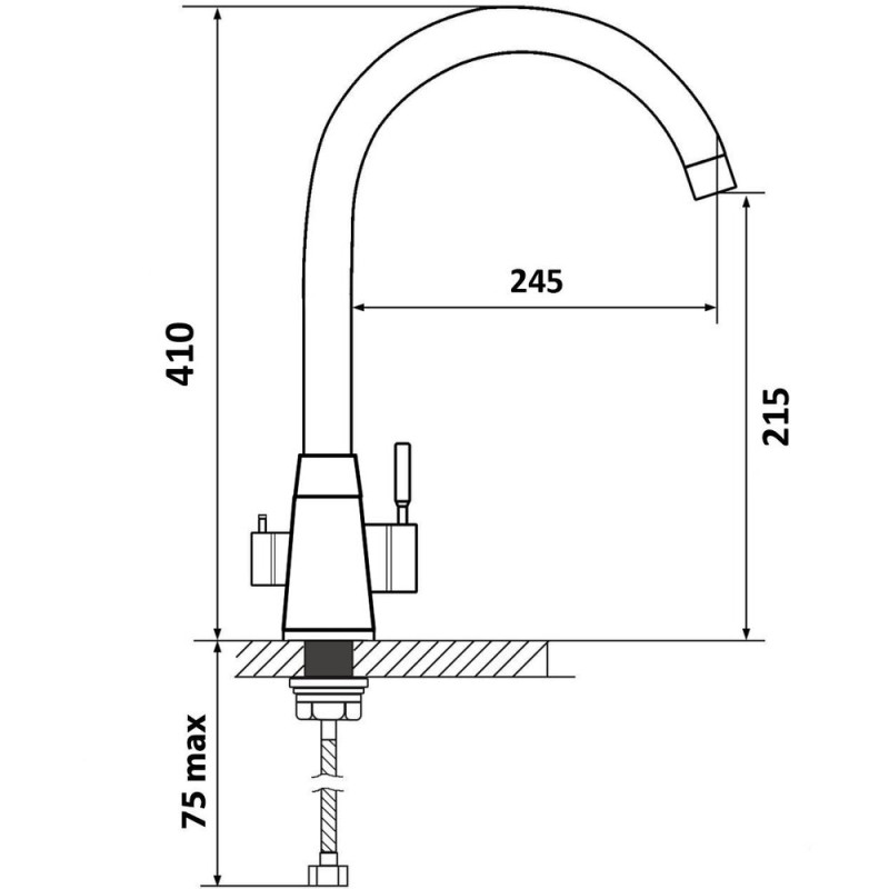 | Особливості | вилив поворотний, підключення для фільтру, підвід води- 1 / 2 дюйма, 3 гнучкі шланги 50см |