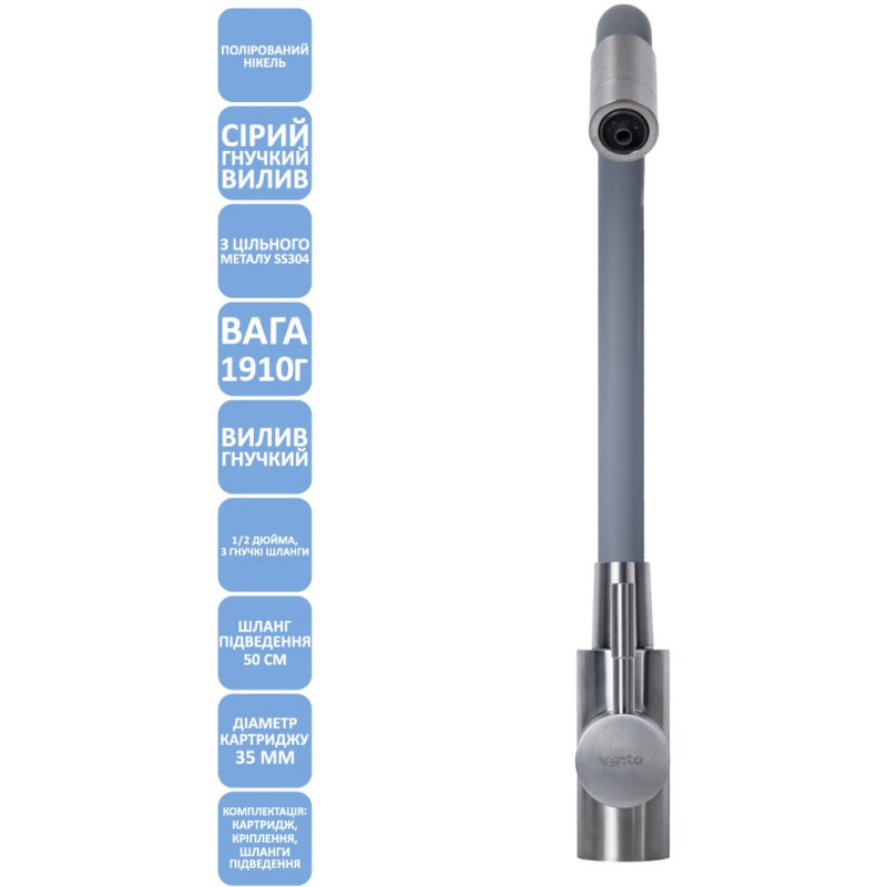 | Колір | полірований нікель + сірий гнучкий вилив |