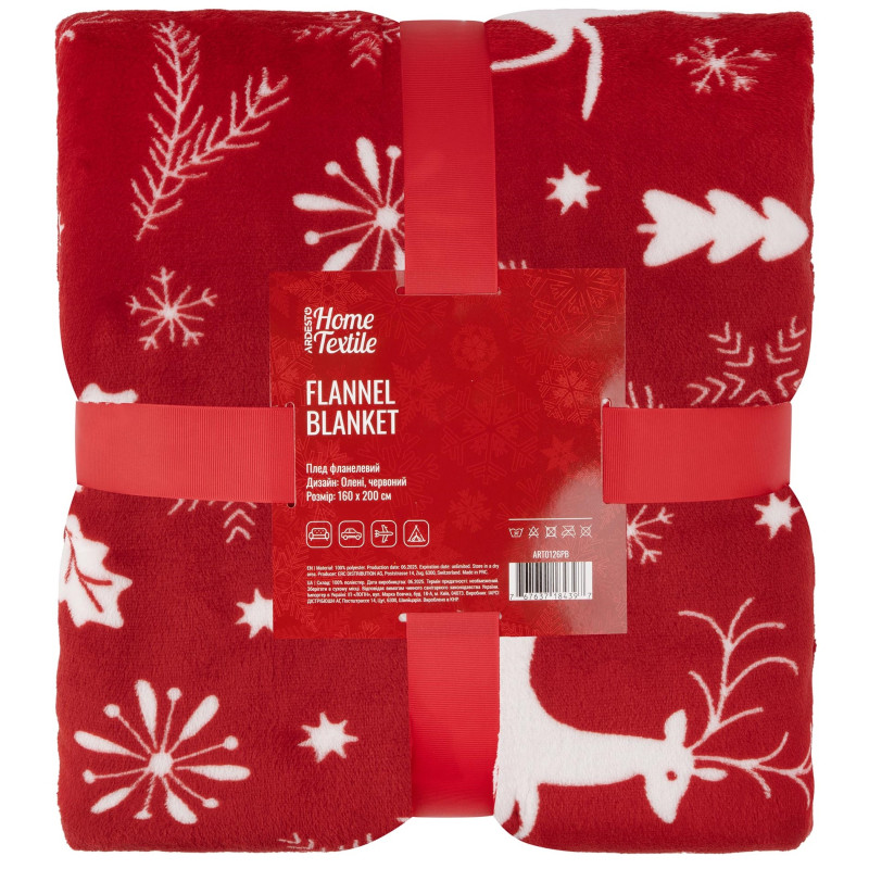 Плед ARDESTO Christmas Flannel 160х200см, 100% поліестер, олені, червоний