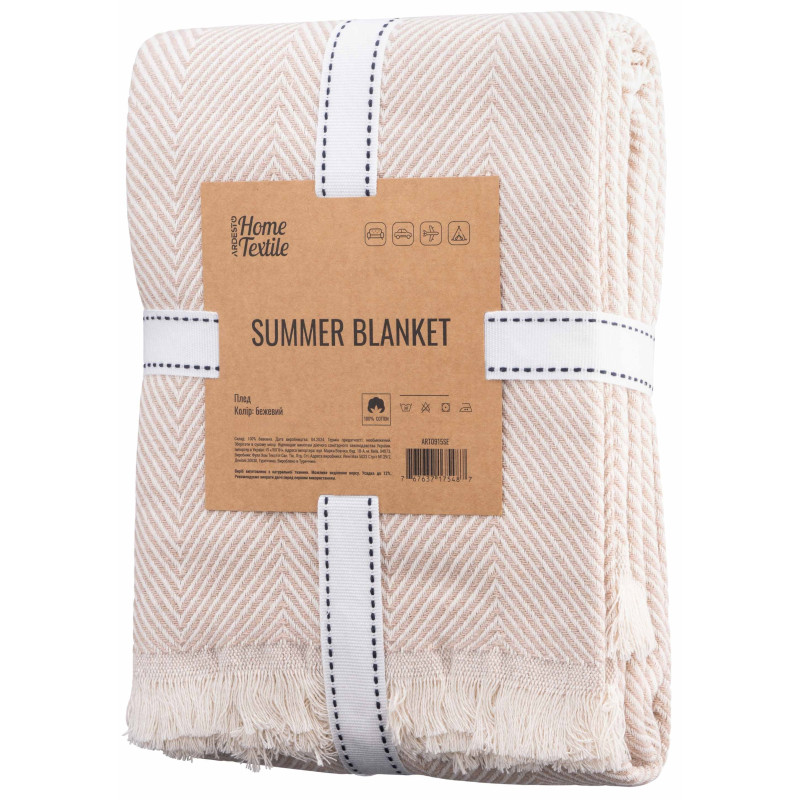 Плед ARDESTO Summer 140х190см, 100% бавовна, бежевий
