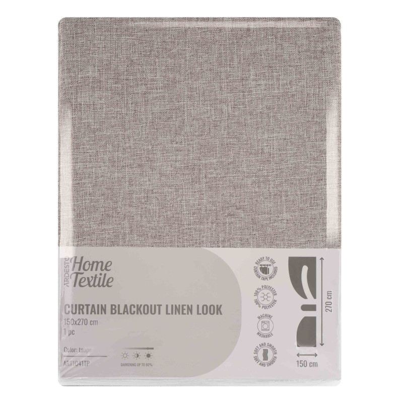 Штора ARDESTO кольору тауп наповнює простір природним теплом. Текстурна рогожка створює вишуканий акцент, а щільна тканина блекаут ефективно блокує світло (затемнення до 80 %). Завдяки продуманому кріпленню на шторній стрічці завширшки 7,5 см її легко адаптувати до будь-якого інтер’єру. Практичний 100 % поліестер забезпечує довговічність, а простий догляд: делікатне машинне прання до 30 °C, вертикальне сушіння, прасування до 110 °C, допомагає зберегти гарний вигляд. Не передбачено сушіння у сушильній машині, відбілювання та хімчистка.